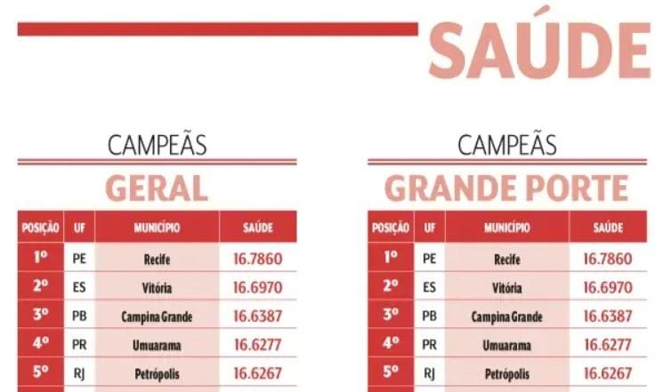 Recife conquista 1º lugar nacional em Saúde no ranking VEJA Negócios; Brejo da Madre de Deus fica em 2º em qualidade de vida
