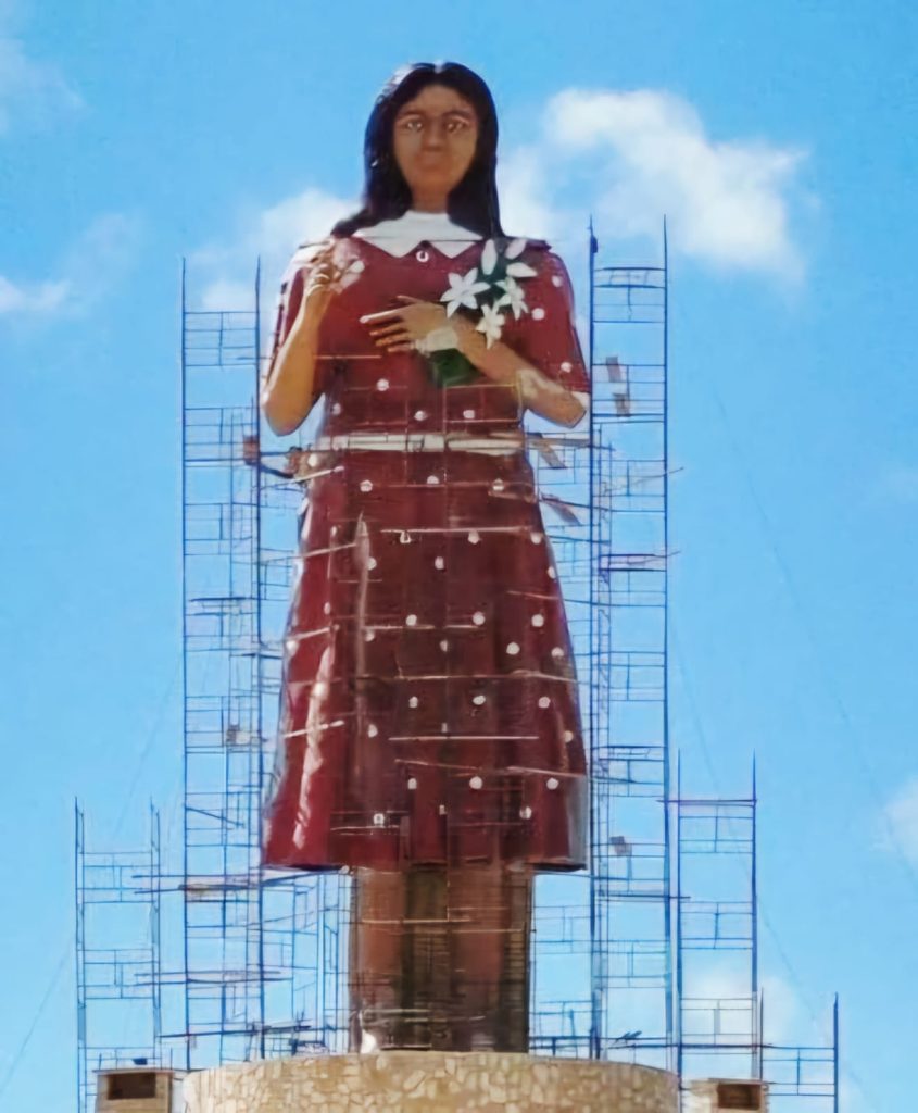 A nova estátua da beata que se tornou símbolo da luta contra o feminicídio está pronta. É a da Menina Benigna, em Santana do Cariri (CE). Órfã de pai e mãe, Benigna Cardoso da Silva foi morta aos 13 anos, a golpes de facão, ao resistir ao ataque sexual de um vizinho, em 24 de outubro de 1941. A devoção à Menina Benigna começou logo após a sua morte. O Vaticano a reconheceu como beata em 2022, a primeira beata do Ceará. A beatificação é a etapa que antecede à canonização.